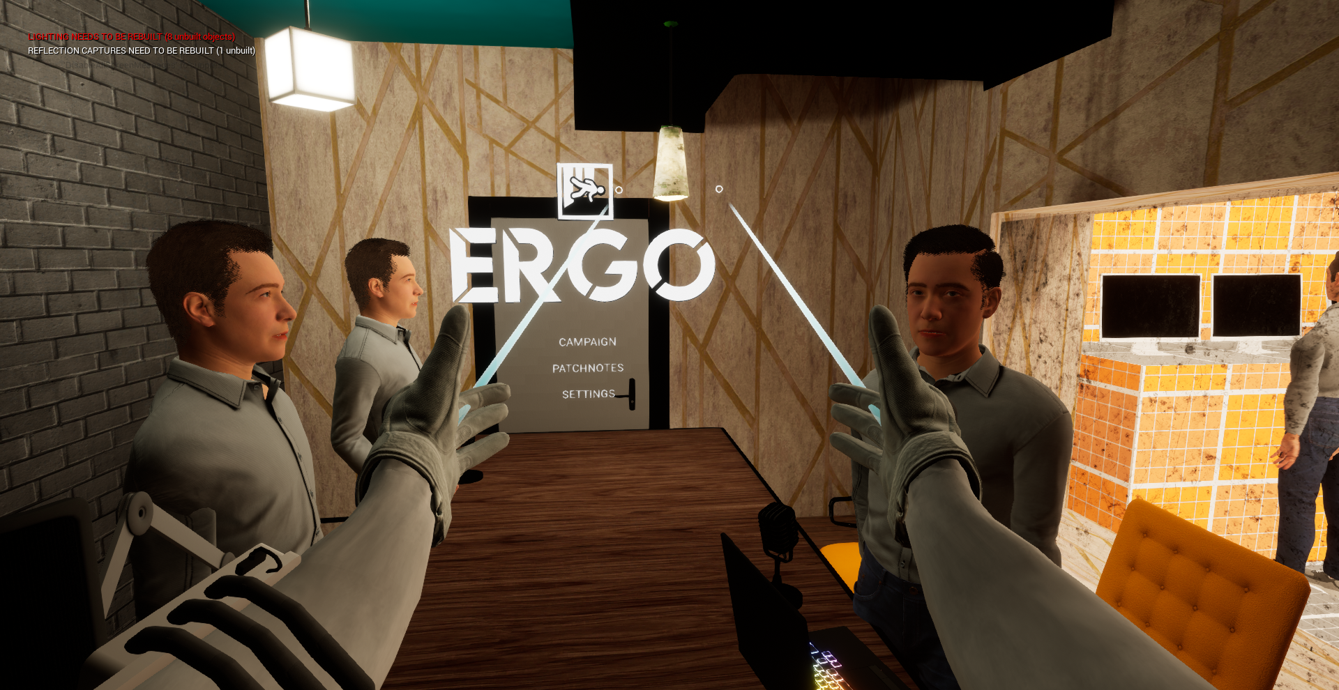 When they're ready, I'll be modifying how Ergo launches, the current build will be reverted back to a build with no unfinished features, this will be done just to make the game look prettier for the time being. When you try to launch the game you will be greeted with launch options (As is the case for SteamVR and OculusVR) You will be able to play the Original Ergo and also play the Redesigned Ergo (they will both be installed when the upcoming build is ready)