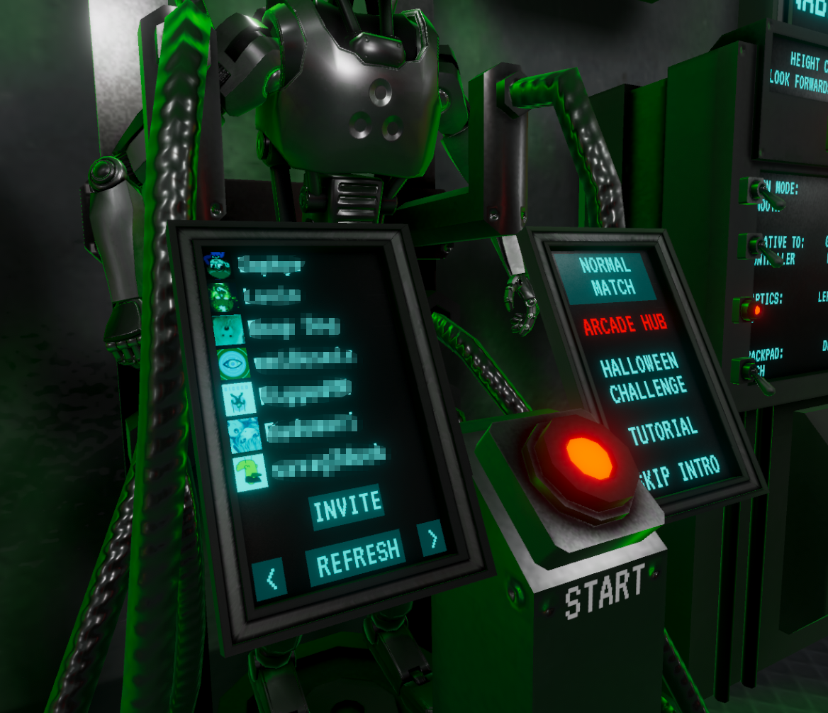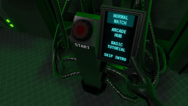 The other big thing is the upcoming Arena mode. I have ditched the whole "virtual training" aesthtetic; the Arcade Hub will be extremely streamlined because I noticed the current layout was too unfocused and confusing for players. Now that the VR tutorial can be launched from the Main Menu, the Arcade Hub will be disabled until the first Arena gamemodes are ready.