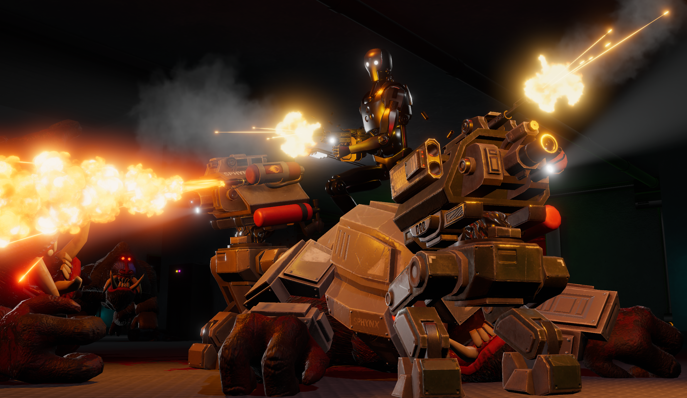 I liked the idea of taking advantage of the fun interactivity you can get with VR and bringing it to the asymmetric field. I did experiment with a "coop" mode back at the Murderbot Halloween Event, where PC players took the role of helpful Mandrillians. In the end, the Mandrillians were never meant to be something you interacted with for too long, and the only thing you could do for them was giving them a Repair Kit to heal them. That's why for this mode I wanted to ramp up the PC-VR player interactions.