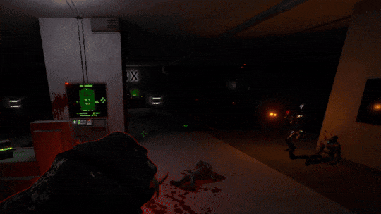 The second weapon crate behind the yellow keycard door is now the Crossbow instead of the Quad Launcher. The Quad Launcher was just not too fun to play against as a Horror Mandrillian, and it didn't really fit the "horror" theme. There was already a guaranteed crossbow spawn in Horror (one of the dead soldiers would spawn with it, some ammo, and a magenta keycard); that spawn is now just the extra ammo and the keycard, which means now you have 2 available tracking bolts on a Horror match.