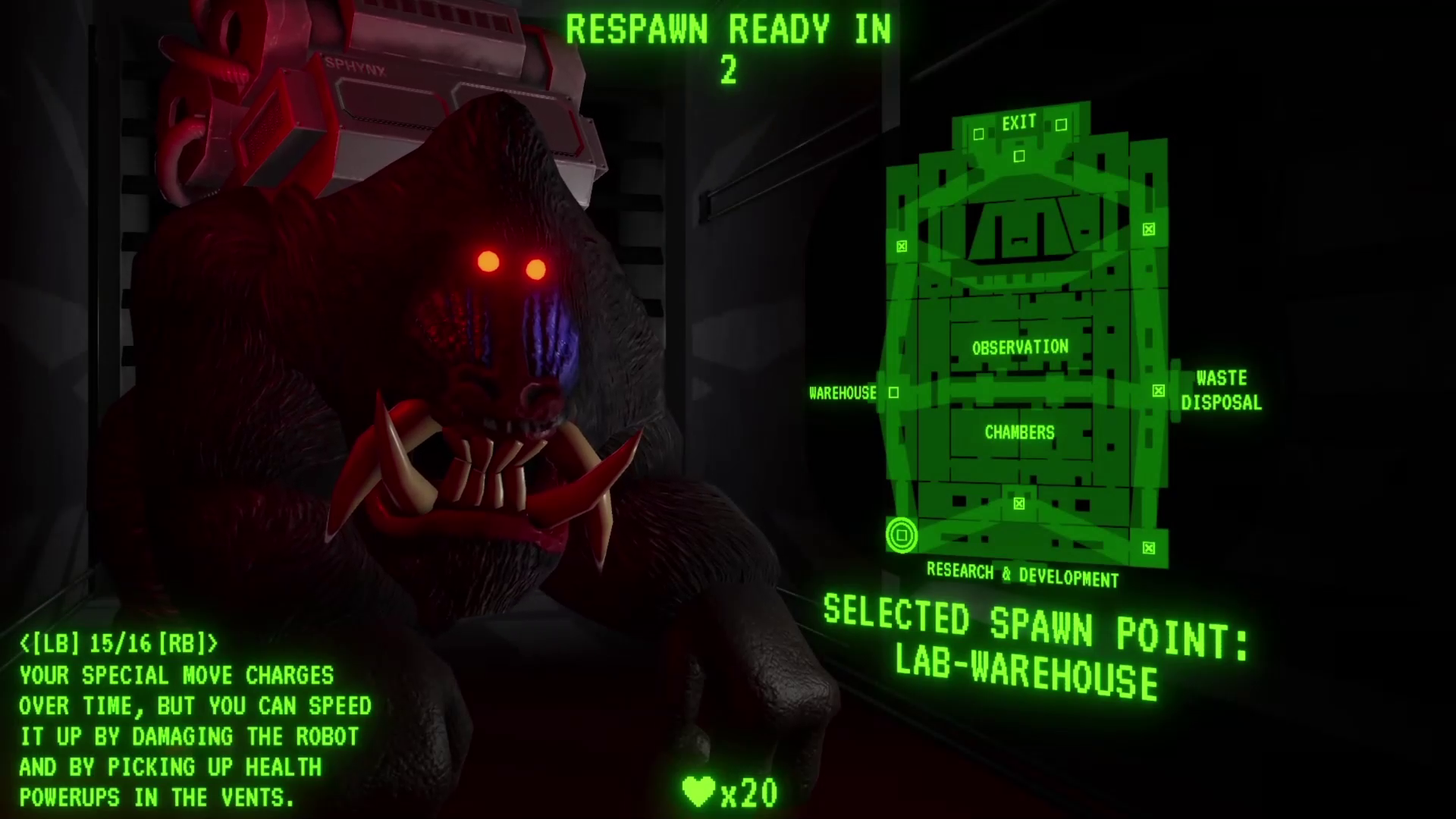 Until now, when you died as a Mandrillian, you had to wait out the full respawn timer looking at your corpse. This was boring and also slightly annoying for everybody, as the Mandrillian could still check the VR player's location while dead, and the spawn location selection would only appear after the countdown finished (meaning the respawn time was always at least -slightly- longer than the match setting value).