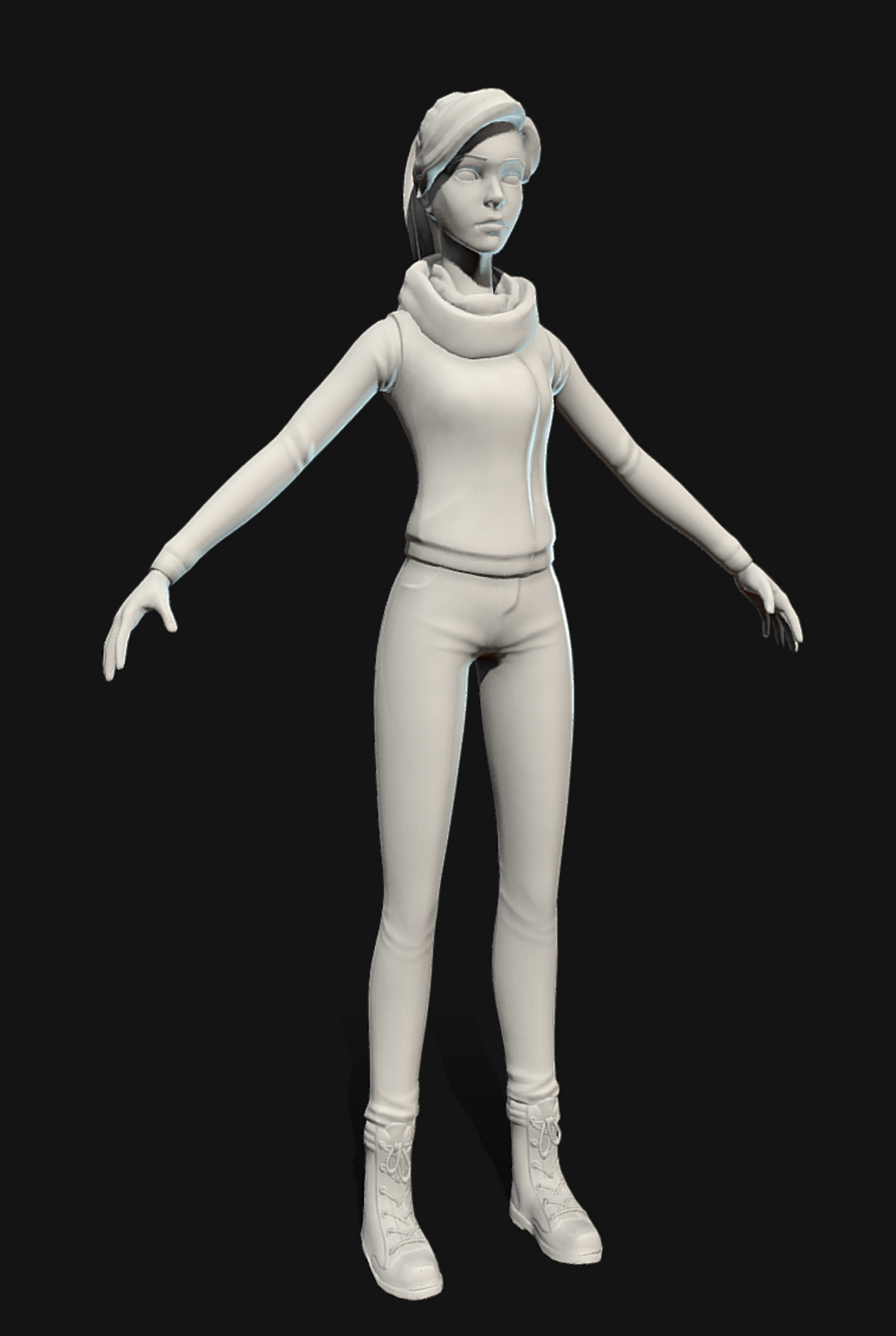 Also note that Amelia is colored in some of the footage below. That's a super rough texture we're using to test. The model above doesn't have that texture, because up close it's really, really terrible. Also, she has no pupils, which is creepy AF.