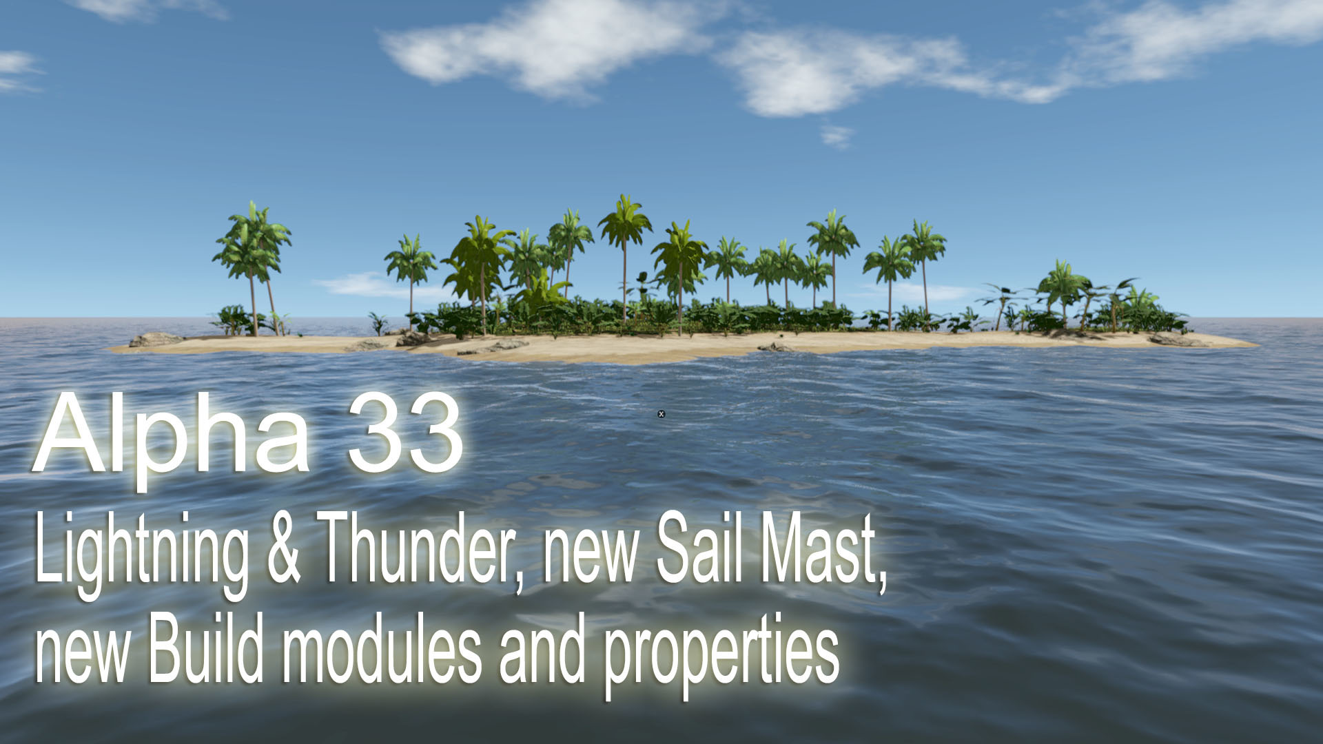 For this update we were mainly focusing on adding realistic Lightning & Thunder moving along with the center of the Storm. There is a new collectible Bandage used for crafting and a new Sail Mast with Wind Indicator. There are new Building modules with different Sun/wind/rain shielding properties. A couple of gameplay improvements were added and many issues were fixed too.