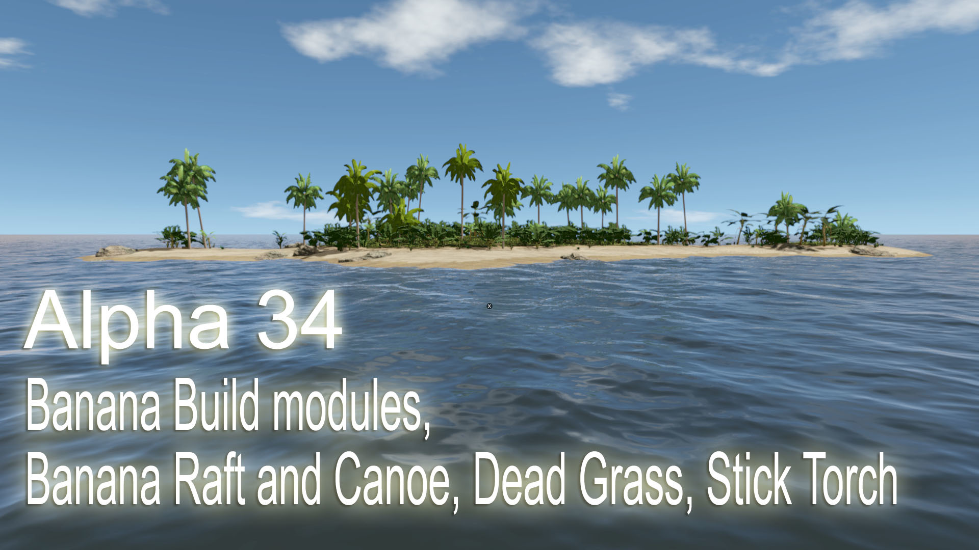 Alpha 34 - Banana Build modules, Banana Raft and Canoe, Dead Grass, Stick Torch