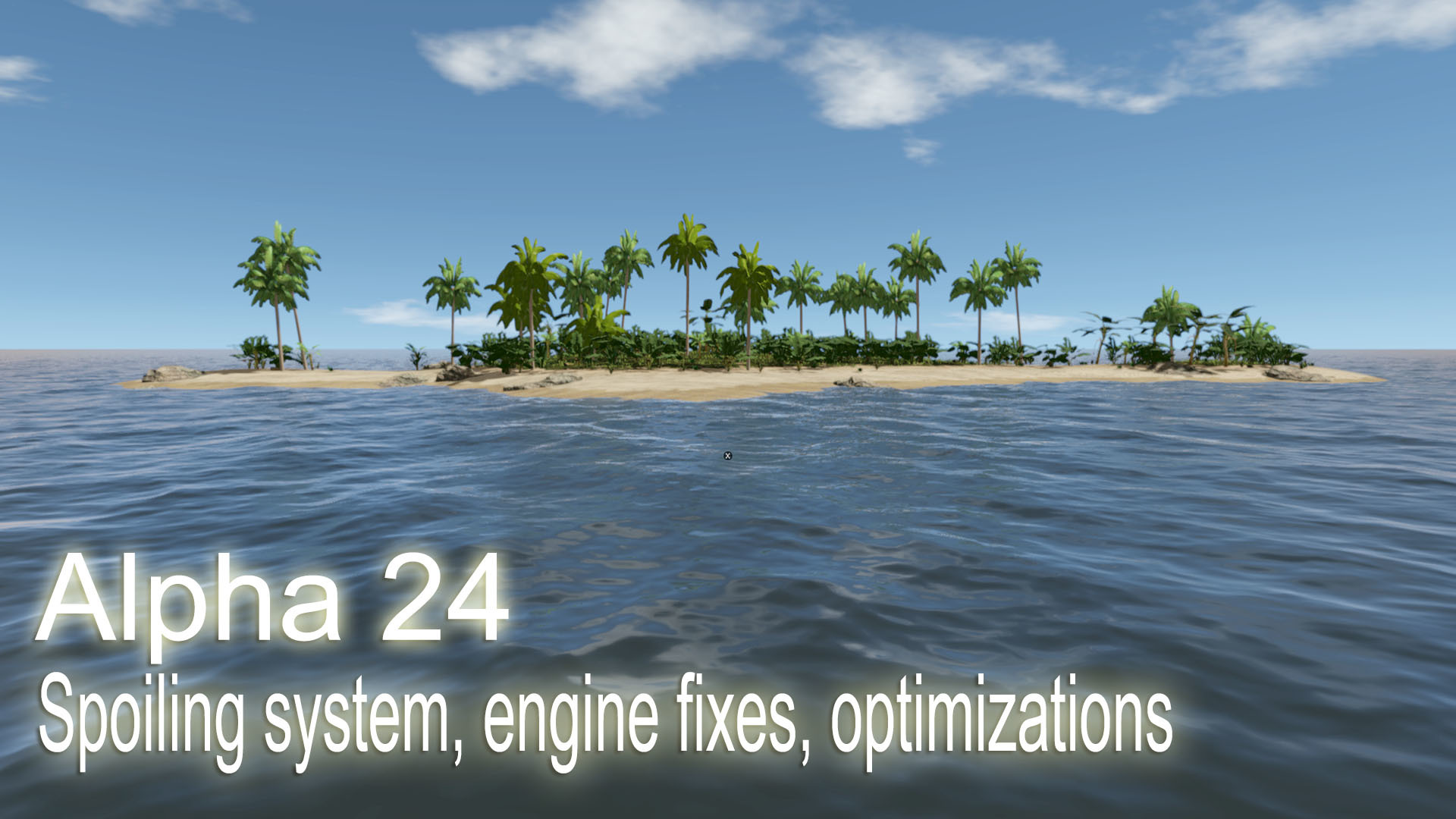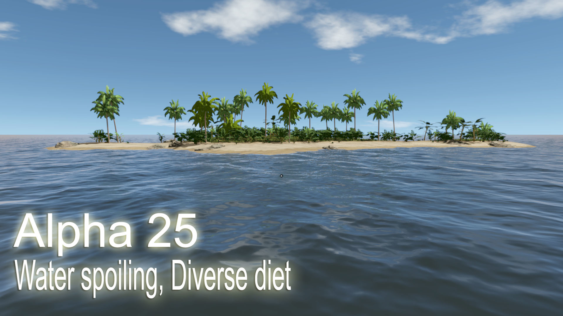 We plan to work some more on the Spoiling system and the Diverse Diet mechanic too. The planned addition for the Water container/preservation system will be washed-up Barrels on the shore - which will also introduce the new Collectibles mechanic. Additional plans: Smoker, choppable banana palms, banana palm building tier, new fruit, Bow ... Besides these new features the Animal's AI will be still on the agenda as the new Sailing UI and the new Menu. We will work also on solving the new issues and we will recheck some older issues too. also. Other new features will be added as implementing planned features and fixing issues will allow us to.