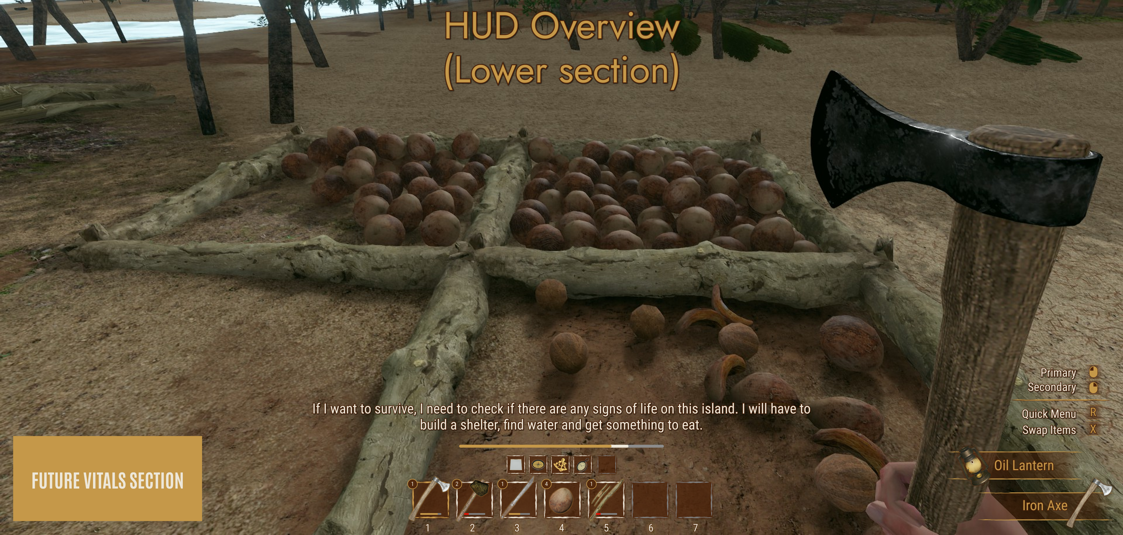 - Local Actions: These are actions that can be performed with the item that is in your hand, will be displayed above the Item in Hand icon, bottom right of the screen