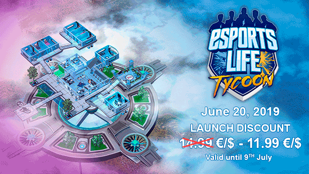 Esports Life Tycoon launches on Early Access 20th of June with a 20% launch discount (only until 9th of July). Furthermore, Youtubers Life or Esports Life: Ep. 1 - Dreams of Glory owners will get an additional 30% loyalty discount for a total of -50%!