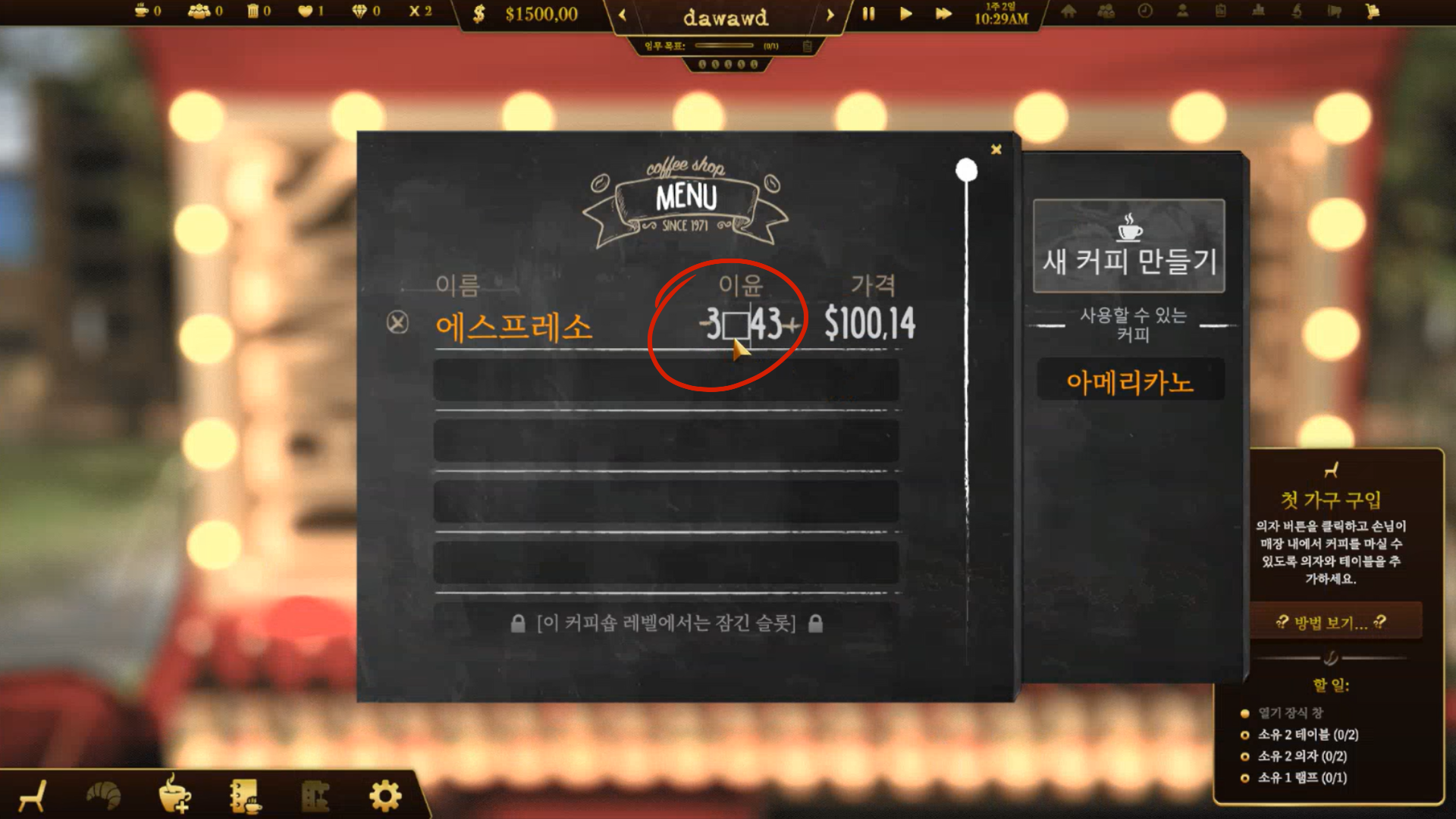 Decorating is one of the important parts of the gameplay of Espresso Tycoon.