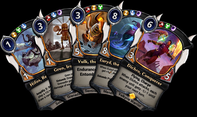 Each game you’ll begin with a relic in play that allows you to spend 2 power to draw a random unit of your deck’s tribe. Then, the cost increases by 2 for further activations.