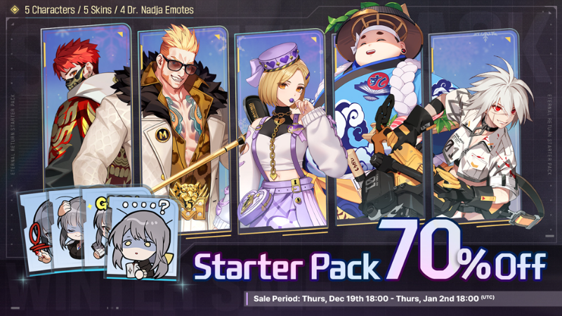 As part of the 2024 Steam Winter Sale, we're offering 70% off the Eternal Return Starter Pack for our new players!