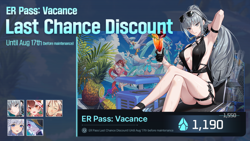 Price after maintenance on Aug 17th - ER Pass: Vacance 1,190 NP → 1,550 NP - ER Plus: Vacance 3,190 NP → 3,990 NP