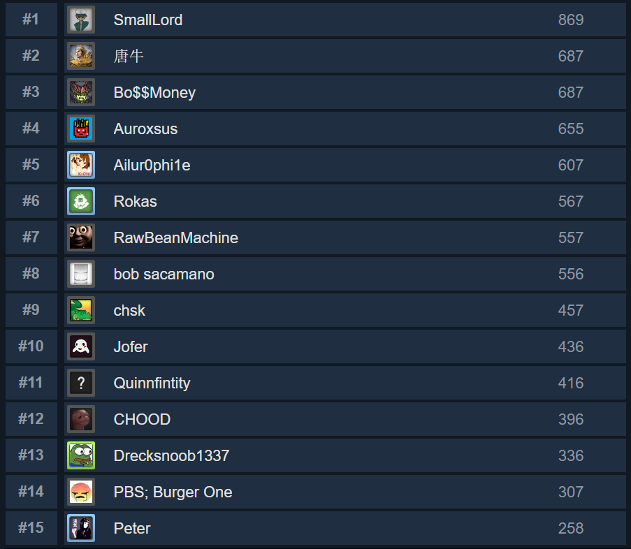 Rankings Top 15 scores of the previous update: Many people reached levels way above anticipated level 20, which meant it's time to increase the challenge. Well done! View the full board here.