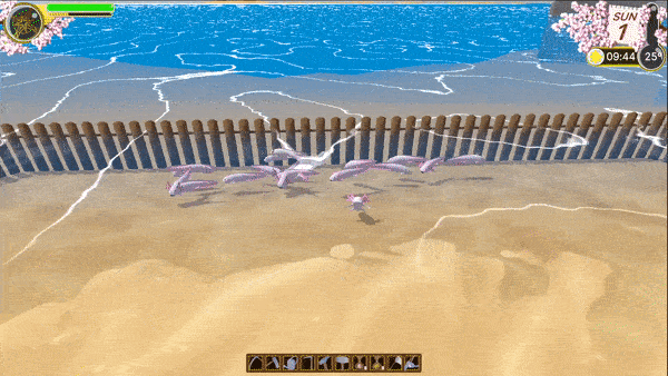 Fishing is done through a battle minigame with a exciting jazz soundtrack There will be 30 fish at the update release (more will be added later) We also added 2 new aquatic critters The placeholder fishing boat will be removed Kelp and Clams will now be forageable on Edengrall's waters