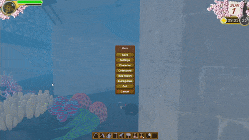 Features: Added baits to the fishing rod * Sinking baits will slowly go down, pulling the line makes them go back up * Floater baits always remain at a fixed height Baits are: * All critters * Some foods * Some small fish. * Bare hook: Infinite but low quality You always lose your bait if a fish bites it, whenever you fish it out or let it go. There are now 18 total fish.