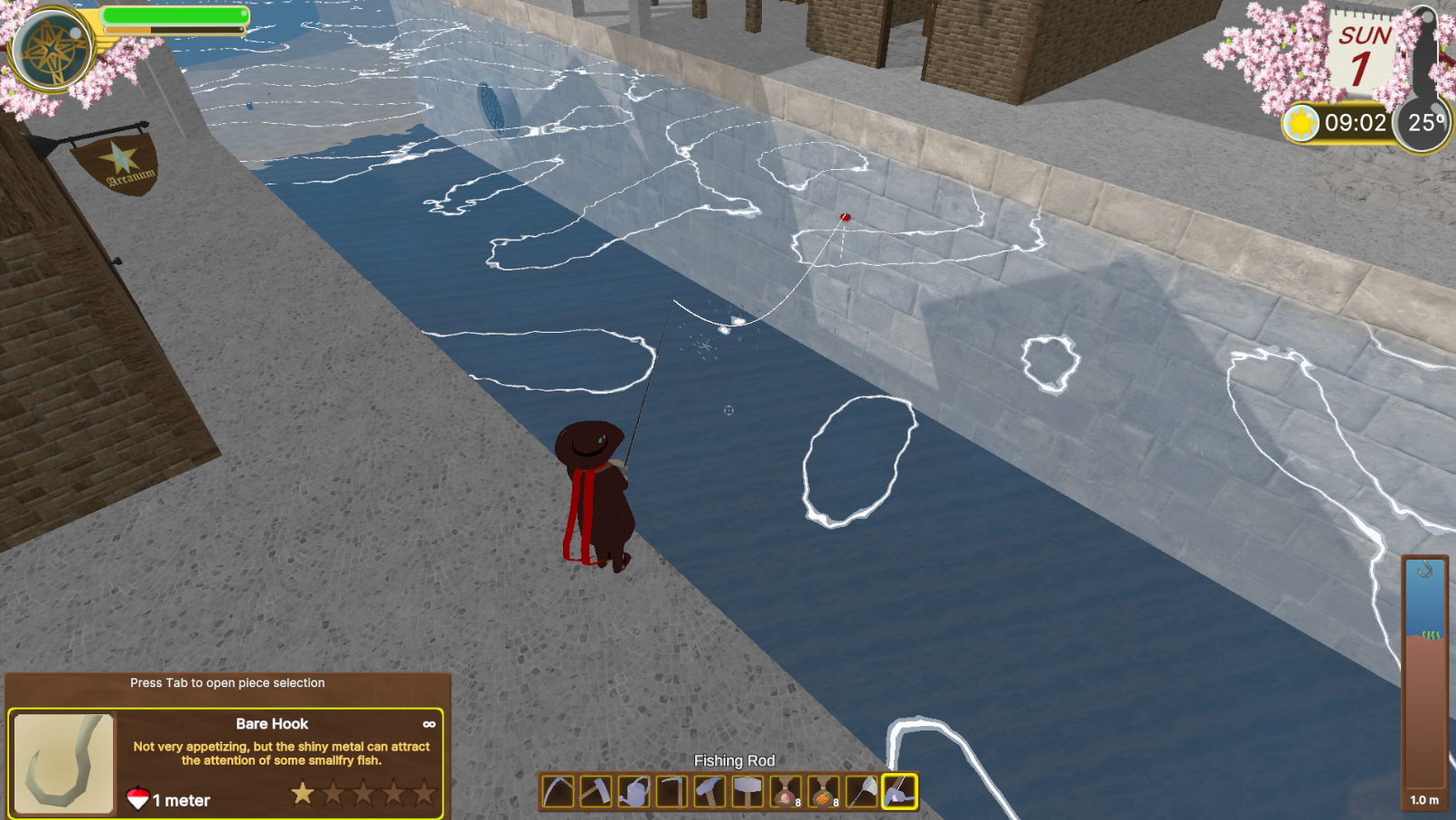 My brother has been hard at work with the fishing, the fishing rod is mostly functional, you can throw the line, change the camera to the floater, pull the line back with a bit of control to left and right.