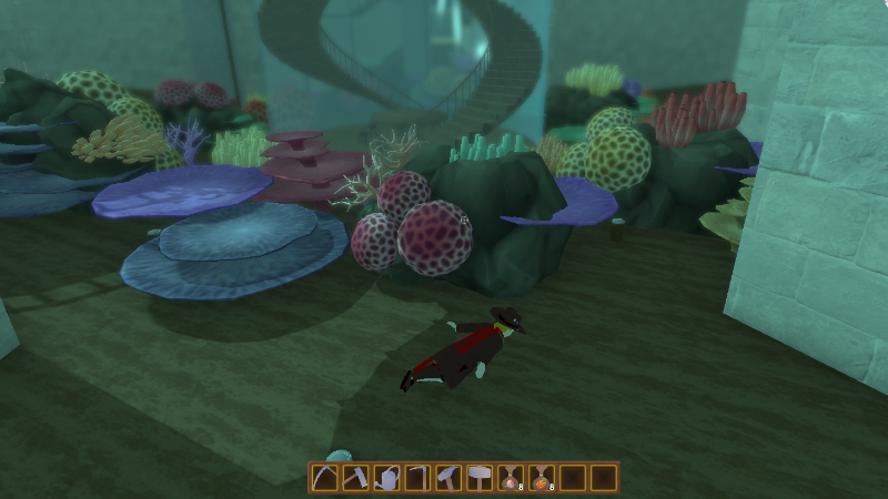 We have added corals in the center of the town, they are native to the coral reef to the east, we have placed some coral there too, but we won’t fill the whole area until we make them fully optimized since we don’t want to slow down the game because of an area that is not even accessible yet. We are probably going to unlock this area after the faerie village, we need to change a few things in the grass system to enable new areas, and it might take a while.