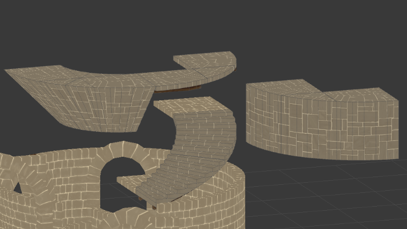 Our small break is over, time to get stuff done, I am back to modeling stone parts, medium tower parts are next (2 meter radius towers, small tower parts were 1 meter radius), I will later do ramps, stone diagonal support and castellations.