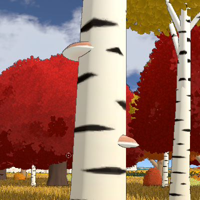 We are working on mushrooms, vines and other forageables that will grow on adult trees, the hard part here is balancing optimization with visuals, we want them to be visible from far away, but this would mean every tree would have to be scanned from far away instead of only when the player is close.