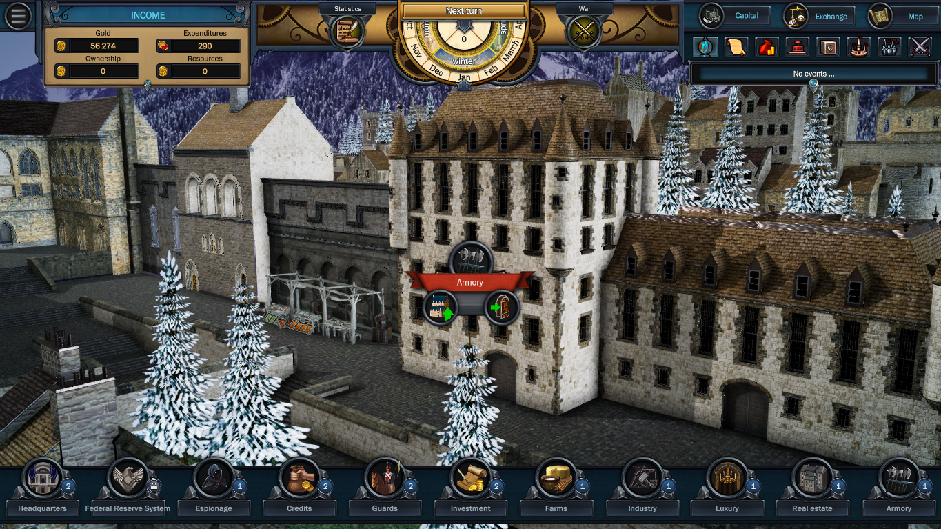 4. Changed: Increased the maximum property that you can buy in one move. This maximum depends on the level of the "Investments" department. Earlier at the maximum level of the department, you could buy a property of no more than 60,000 gold in one turn. Now this number is 300.000