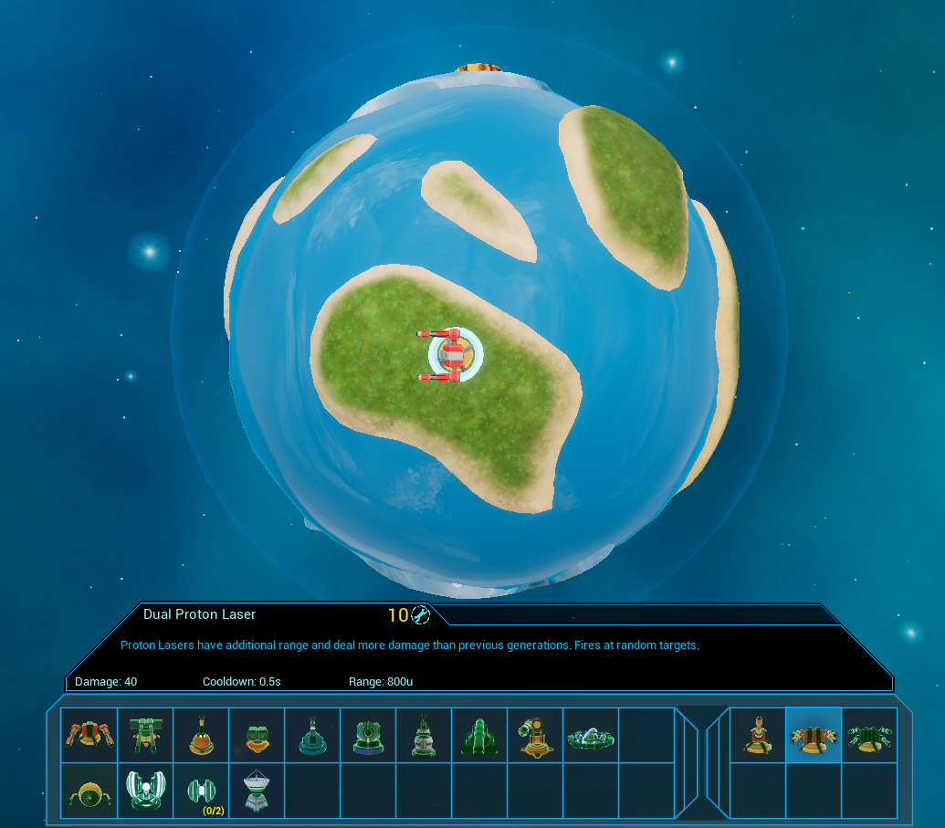Misc fixes: Placement bug causing buildings to no longer be deselected or constructed is now fixed. Corrected wave icons for units with multiple components. Ships could occasionally get stuck moving towards orbit, this should happen at a reduced frequency but is still on the known issue list. Fixed rare issue that could cause the player to experience defeat after they had won the game. Fixed issue causing some projectiles to revert location to origin. Ships should now properly disappear when the game ends. Fixed issue with Concentrated Plasma II not selecting the correct target. Fixed rare issue with beam weapons causing a crash. Fixed issues with some enemy projectiles not using correct planet shield damage interface. Fixed issues with some units teleporting after reaching initial planet destination.