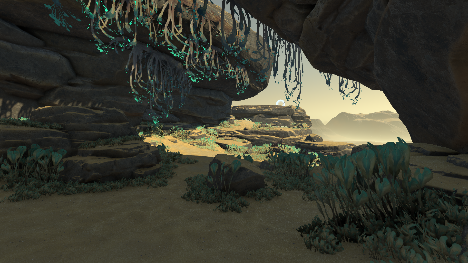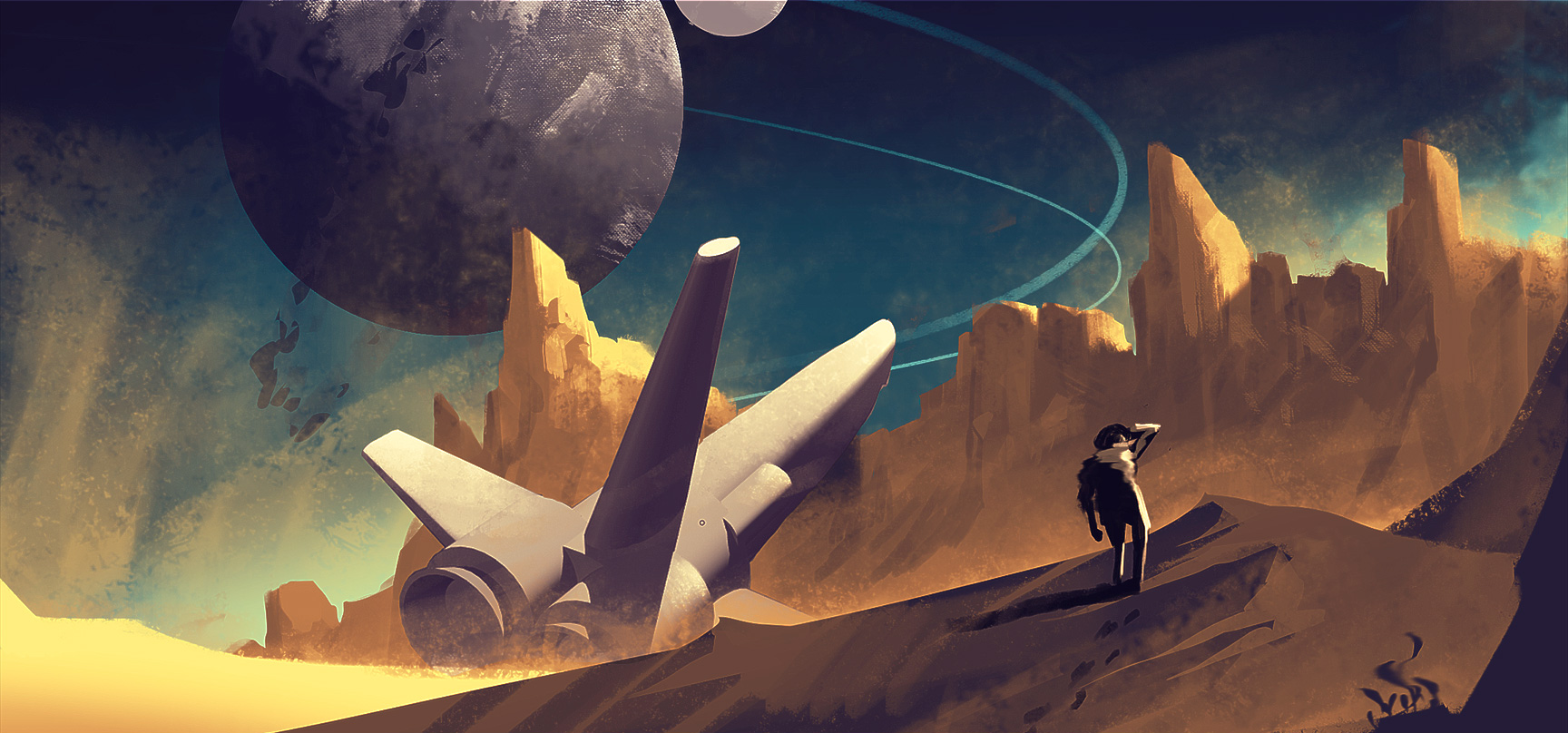 I have already shown you this picture above. It’s a screenshot with overpaint: the shattered moon, plants and the distant rock are not real.
