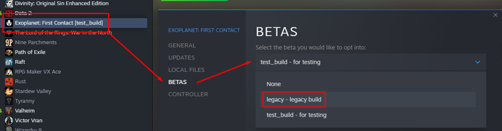 Obviously, you have to own Exoplanet: First Contact in your library because we are going to add the new build to a separate beta branch on Steam. This way the old build will be available yet as the main build while you can get access to the new one with a few clicks.