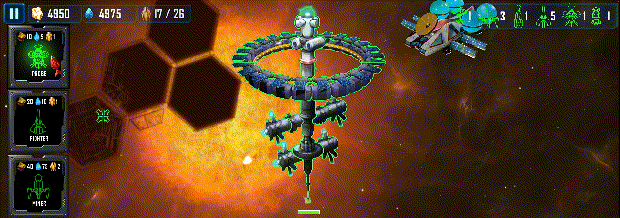 Aliens are building a grid of hexagons between Sun and Earth, and you must command the Human fleet to find and mine asteroids, build spaceships and destroy them!