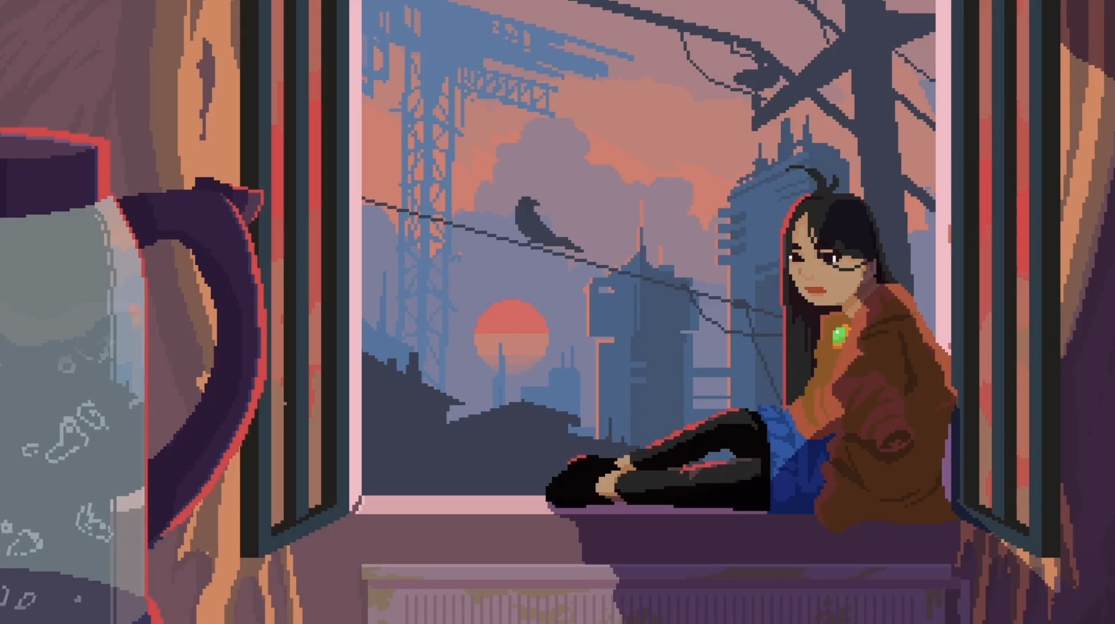 We decided to set the story in a dystopian foreseeable future, around the years 2050 to 2070. Most of it will take place in the arcade, a social network where people upload their consciousnesses to live a better life than the one in the real world which has been destroyed and torn apart by endless wars between corrupt governments. The world we see outside of Mika’s window is futuristic yet not that far from us. Our main inspirations here were some of the most famous cyberpunk works which describe a reality not too far away from us that has developed some very advanced and complex technologies even though the world is in shambles. Quoting cyberpunk’s most important author, William Gibson, we tried to represent a reality consisting of “high tech and low life”.
