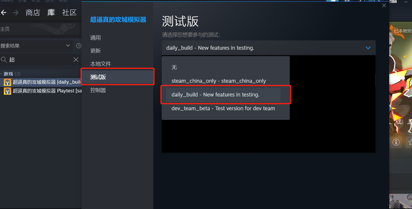 Go to your Steam Library, right-click the game and select 'Properties'. Click on the 'BETAS' tab and from the drop-down menu select “daily_build”.