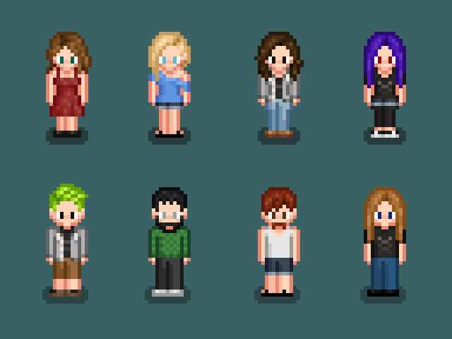 Okay okay, listen, I know I was supposed to be working on clothes and hair. We got a little inspired by a video about the animations of Final fantasy 6 and decided I should do a full round of emotion sprites for the NPCs. We originally had the classic emotion bubbles, but felt like they weren't adding much. We think these are much more fun and will add a lot more to conversations and cutscenes.