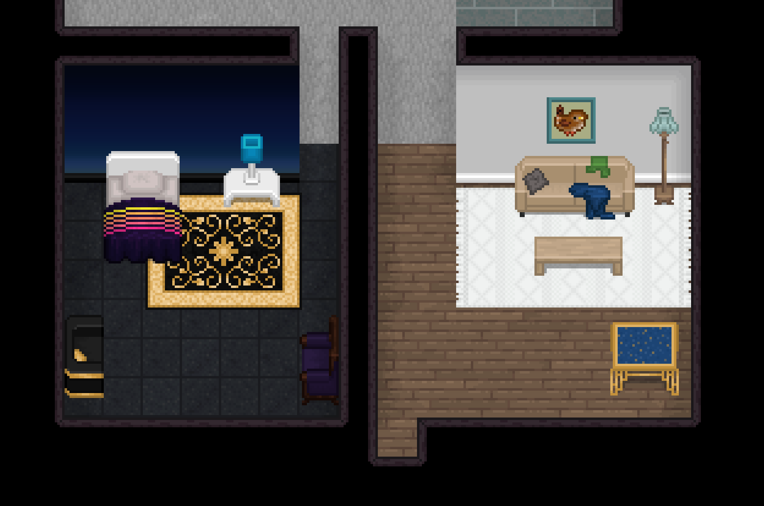 My time has been a bit split between making furniture, bug testing, and helping with the dialogue system change. As far as art goes, I will just be hammering away at furniture pieces until we have a satisfactory number for early access, then I will move on to hair or clothes. I currently have 17 furniture sets planned, of which I've completed 14. This does not include miscellaneous indoor items and outdoor items. Since I haven't gotten to those miscellaneous items yet, showing off the furniture is a bit bare bones, but here are a few random items in the level 1 house!
