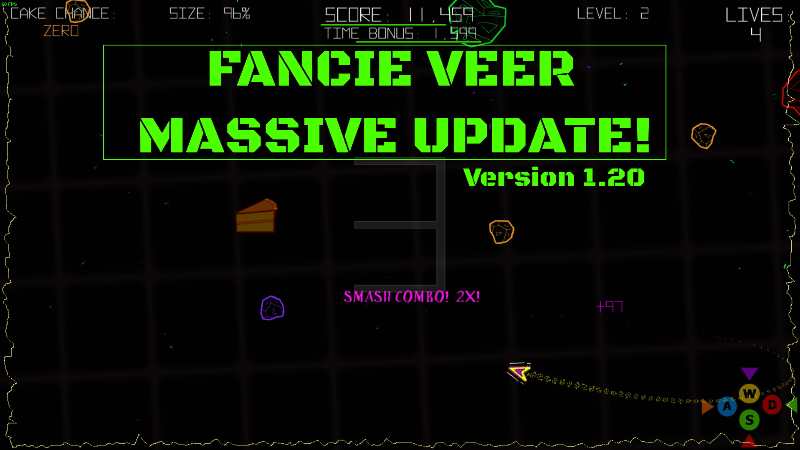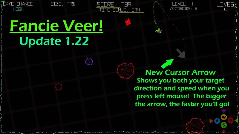 More changes come to FAN'CIE VEER! in this update, designed to make this game easier to understand if you need to change ship colors before shooting to streaking through a Vektoroid and also encourage you to take more chances to get those crash combos!