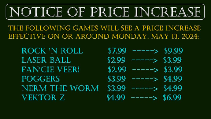 PRICE INCREASE FOR SIX ZAXTORGAMES NOTIFICATION