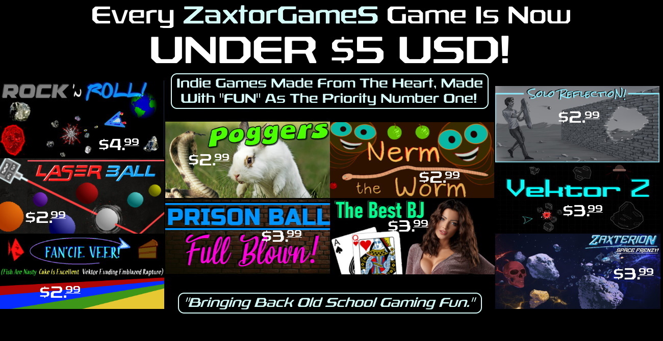 Every ZaxtorGames Title Is Now Under $5!! - Incredible Replay Value X 10!!