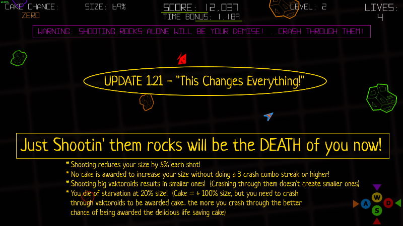 ... I tried and tried since the launch of this game to convince players that crashing your ship through the vektoroids (rocks) was the best way to have both fun and the best way to score the most points.