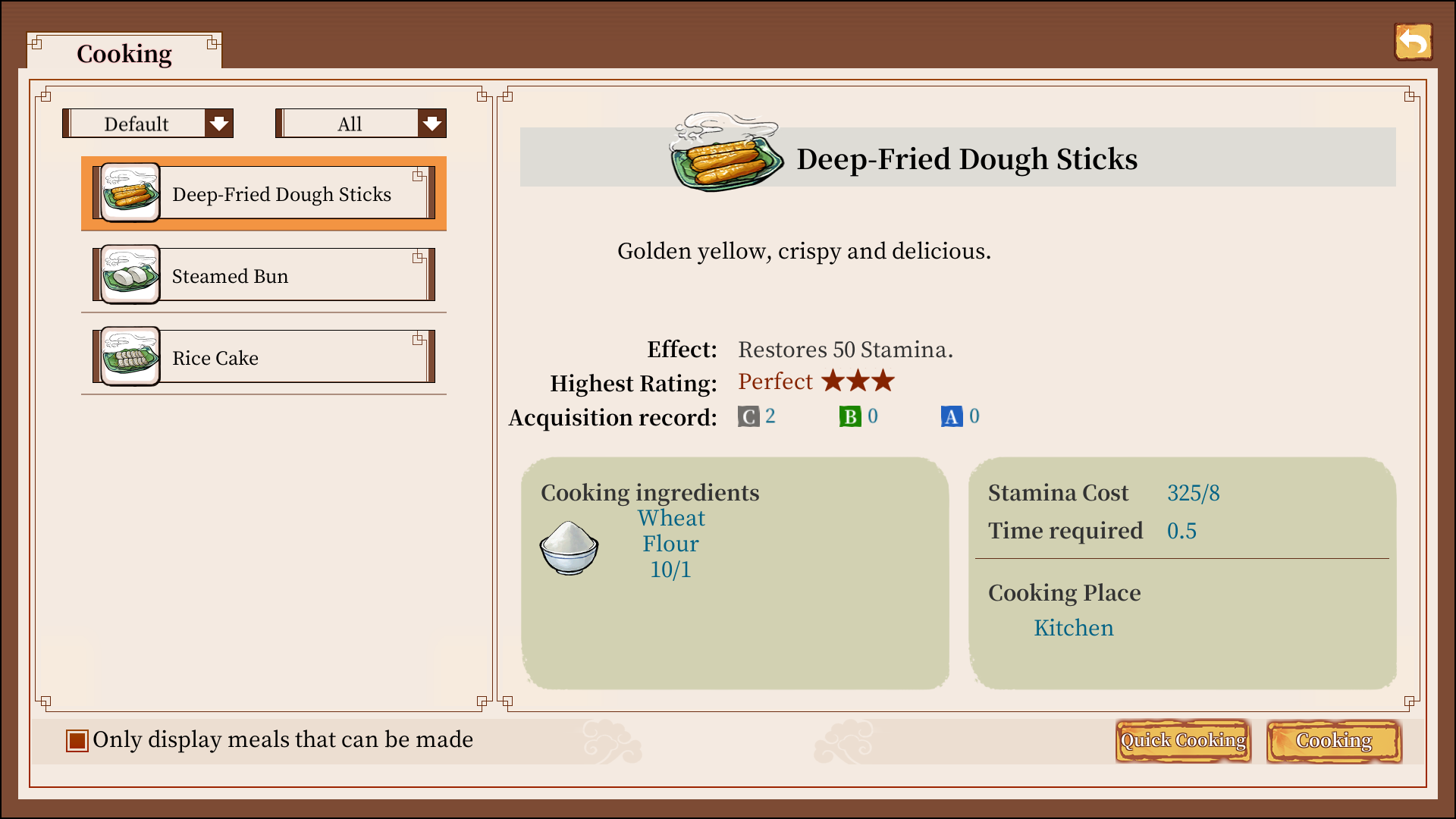 When cooking, you can select dishes with sufficient ingredients to make.