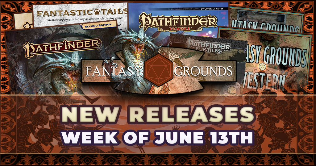 New Releases since Monday, 13th of June 2022Pathfinder 2 RPG - Lost Omens: Monsters of Myth Publisher: Paizo Inc.System: Pathfinder 2.0Type: Accessoryhttps://store.steampowered.com/app/2014010 Pathfinder 2 RPG - Pathfinder Bounty # 18: From Family Lost Publisher: Paizo Inc.System: Pathfinder 2.0Type: Adventurehttps://store.steampowered.com/app/1957920 Pathfinder RPG - Flip-Tiles - Darklands Perils Expansion Publisher: Paizo Inc.System: Generic Add-onsType: Map Packhttps://store.steampowered.com/app/1992660 Pathfinder RPG - Flip-Tiles - Urban Waterfront Expansion Publisher: Paizo Inc.System: Generic Add-onsType: Map Packhttps://store.steampowered.com/app/1992630 Pathfinder RPG - The Harrowing Publisher: Paizo Inc.System: Pathfinder RPG and D&D 3.5/ OGLType: Accessoryhttps://store.steampowered.com/app/1998160 Starfinder RPG - Flipmat - Dead World Publisher: Paizo Inc.System: Generic Add-onsType: Map Packhttps://store.steampowered.com/app/2017760 Starfinder RPG - Flipmat - Ghost Ship Publisher: Paizo Inc.System: Generic Add-onsType: Map Packhttps://store.steampowered.com/app/2007190 Starfinder RPG - Flipmat - Starfinder Society Starships Publisher: Paizo Inc.System: Generic Add-onsType: Map Packhttps://store.steampowered.com/app/2017770 Starfinder RPG - Flipmat - Starliner Publisher: Paizo Inc.System: Generic Add-onsType: Map Packhttps://store.steampowered.com/app/2016390 FG Western Map Pack Publisher: SmiteWorks USA, LLCSystem: Generic Add-onsType: Map Packhttps://store.steampowered.com/app/2055880 FG Western Map Pack 2 Publisher: SmiteWorks USA, LLCSystem: Generic Add-onsType: Map Packhttps://store.steampowered.com/app/2055890 Fantastic Tails Core Ruleset Publisher: Indie PublishersSystem: Fantastic TailsType: Rulesethttps://store.steampowered.com/app/1993640 ON SALE THIS WEEK THRU SUNDAY, JUNE 19TH, 2022 June 14, 2022