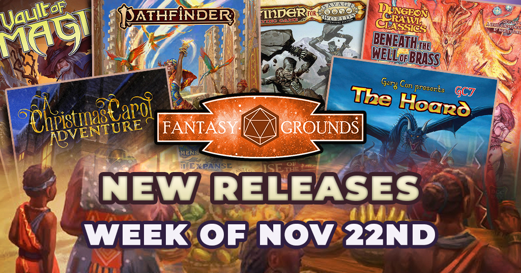 New Releases since Monday, 22nd of November 2021 Pathfinder 2 RPG - Pathfinder Lost Omens: The Mwangi Expanse Publisher: Paizo Inc. System: Pathfinder 2.0 Type: Setting https://store.steampowered.com/app/1811090