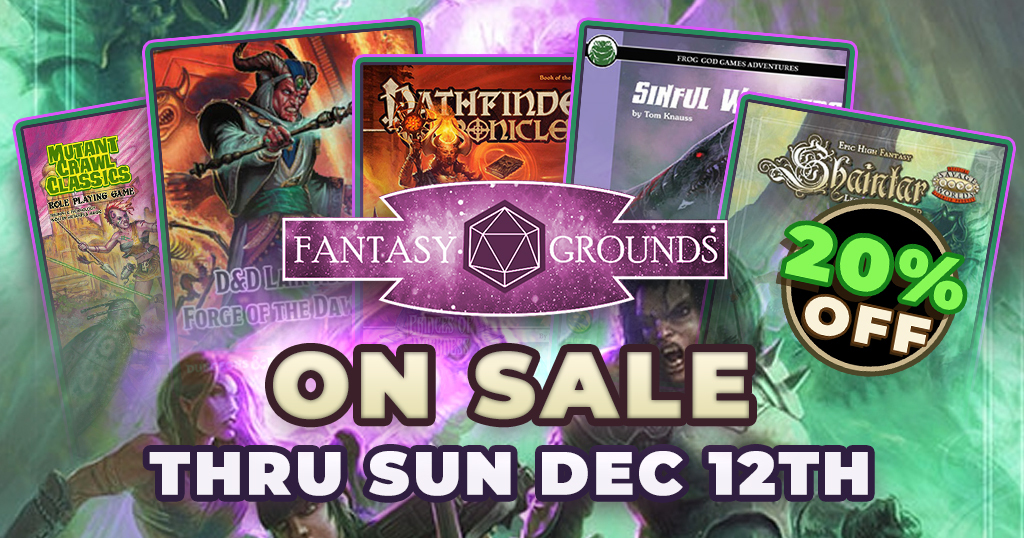 ON SALE THIS WEEK THRU SUNDAY, 12TH OF DECEMBER 2021 D&D - Lair Assault: Dawn of the Forge Titan (5E) Publisher: Wizards of the Coast System: D&D fifth edition Type: Adventure https://store.steampowered.com/app/585120