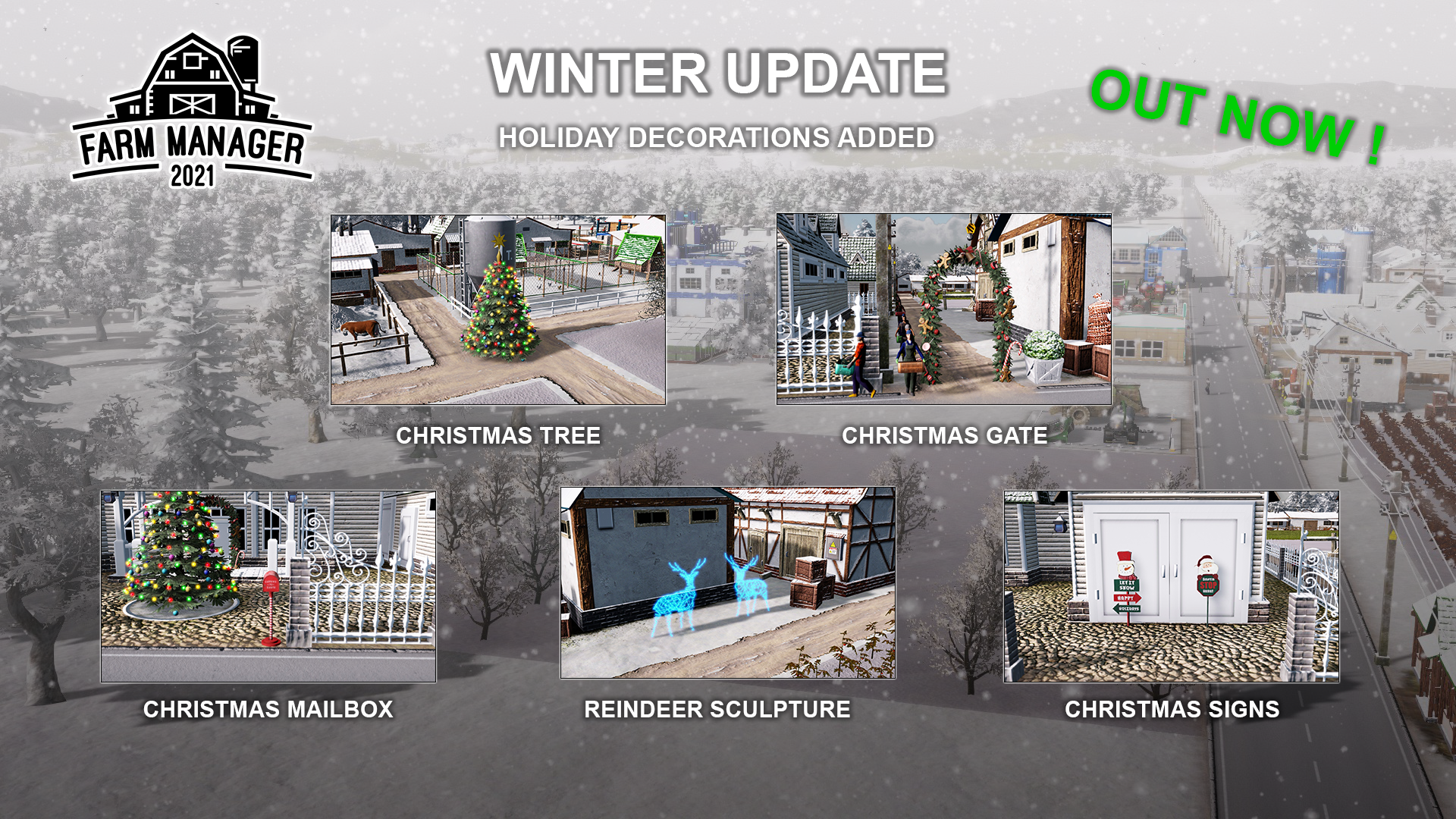 Dear Players, We wanted to leave you with a small token of our appreciation before the Holidays. Here's a free update adding some Holiday themed decorations to spruce up your farms during the Winter.