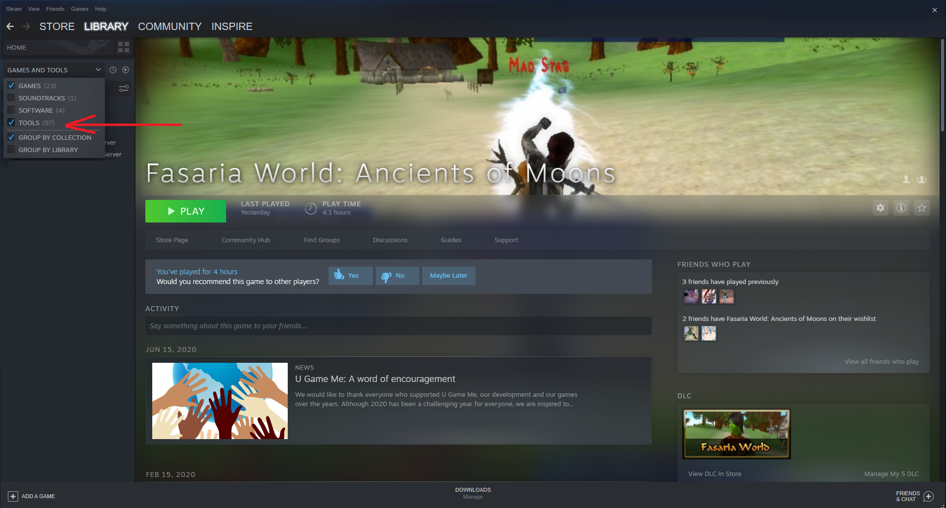 3. The option to download Fasaria World Server should now appear in your list under the client game. Select the server option and install the server.