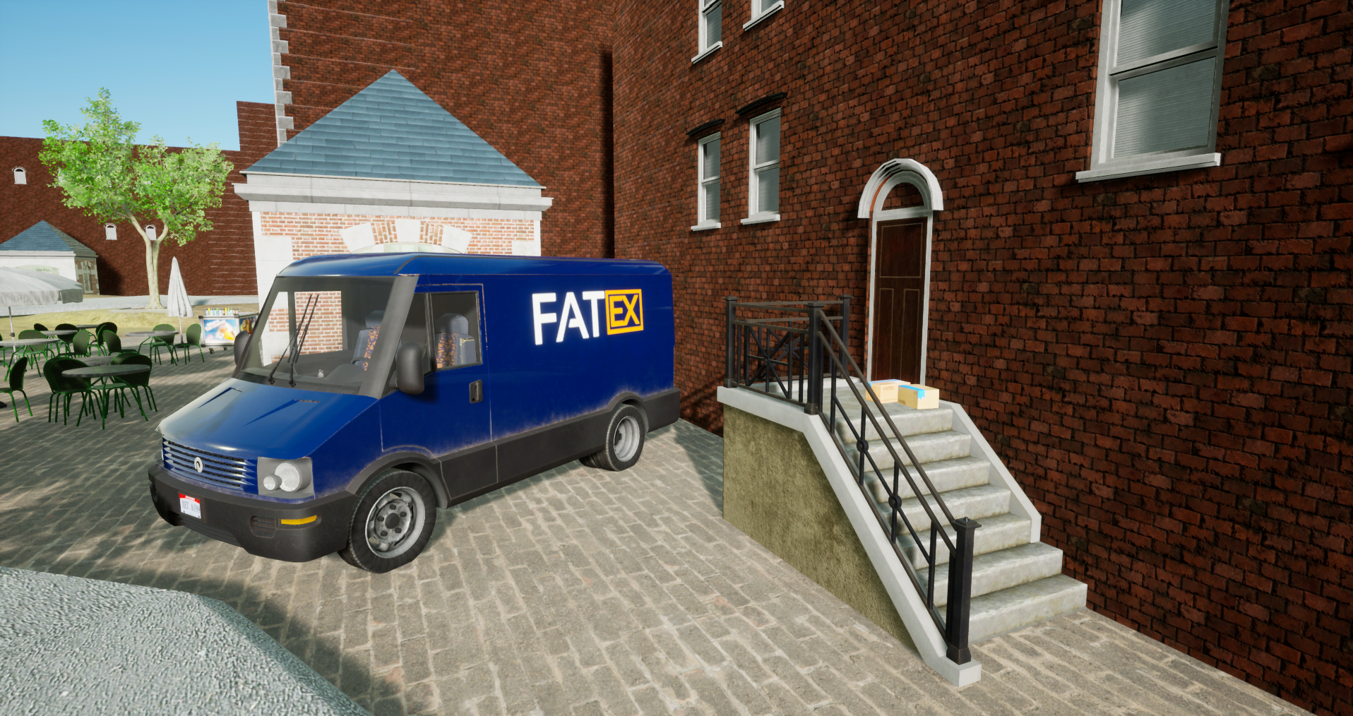 The truck neatly parked next to the door signifies that he is finally getting his well-deserved rest. Perhaps after a short nap he will then go to the park for a short stroll or to a nearby cafe to grab himself some coffee? On his free time he is after all allowed to do anything he wants! What do you think our courier is doing after his job? As we do our best to enhance the game graphically we believe that he will have many different areas to visit and recuperate! And what is more - in future you can expect more place to visit and explore!