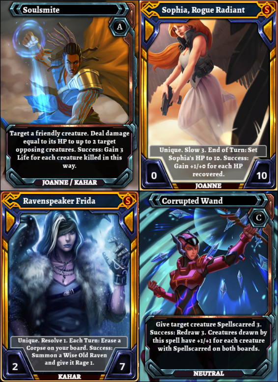 JOANNER & KAHAR B • Devout Lightcrafter -> 3/7 Spellscarred 1 • Reader of the Leaves -> Resolve 1
