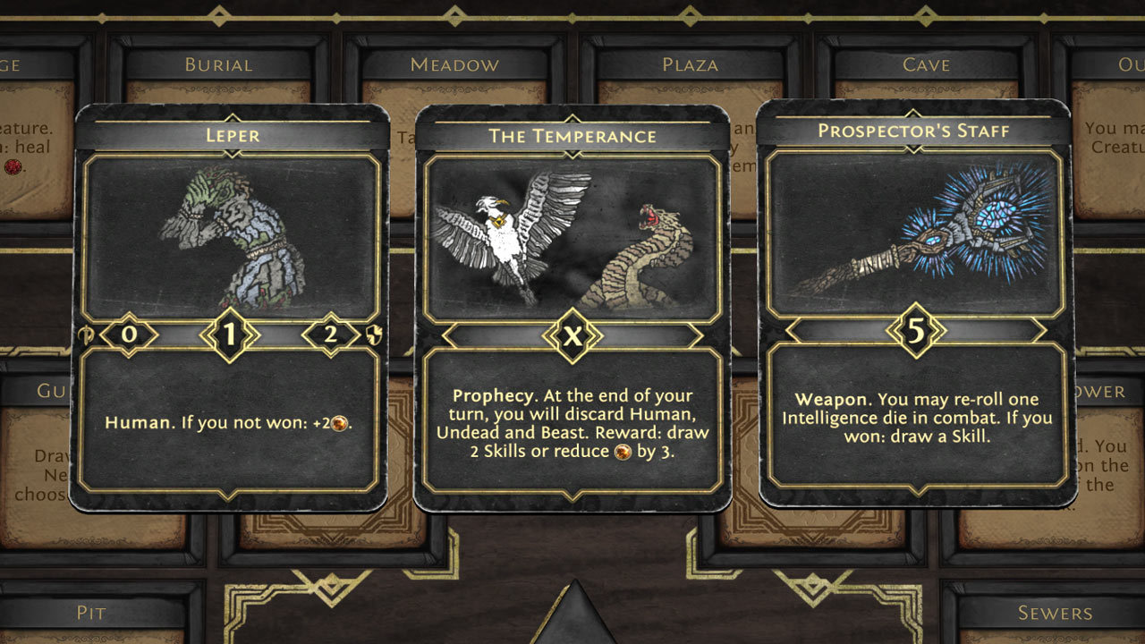 3 cards: «The Temperance», «Leper» and «Prospector’s Staff».