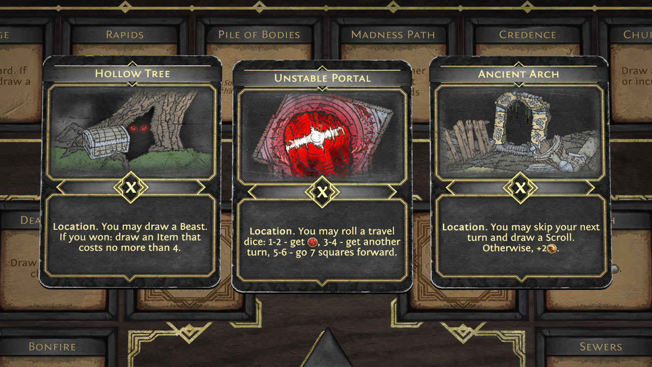 A new square on the inner path - Crypt («Draw 4 cards and choose Undead among them.»).