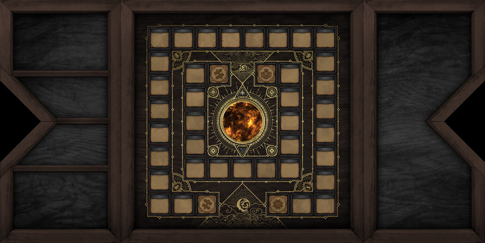 The Fate Sphere will turn into a real object built into the board, and the usual objects such as tokens, coins, dice and decks will be placed in the side sections. So that they do not fall out, we come up with built-in boxes in the side sections.