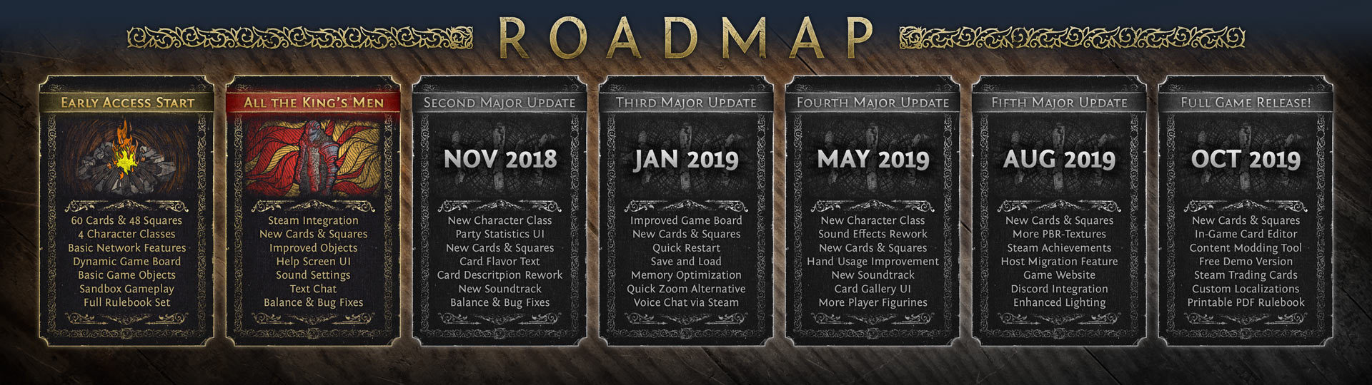 The development of Fated Kingdom continues, and we are finally ready to share with you an approximate work plan right up to a full pledged release. In order not to scan entire notebooks and other horrors of the game designer, it was decided to make a visual roadmap!