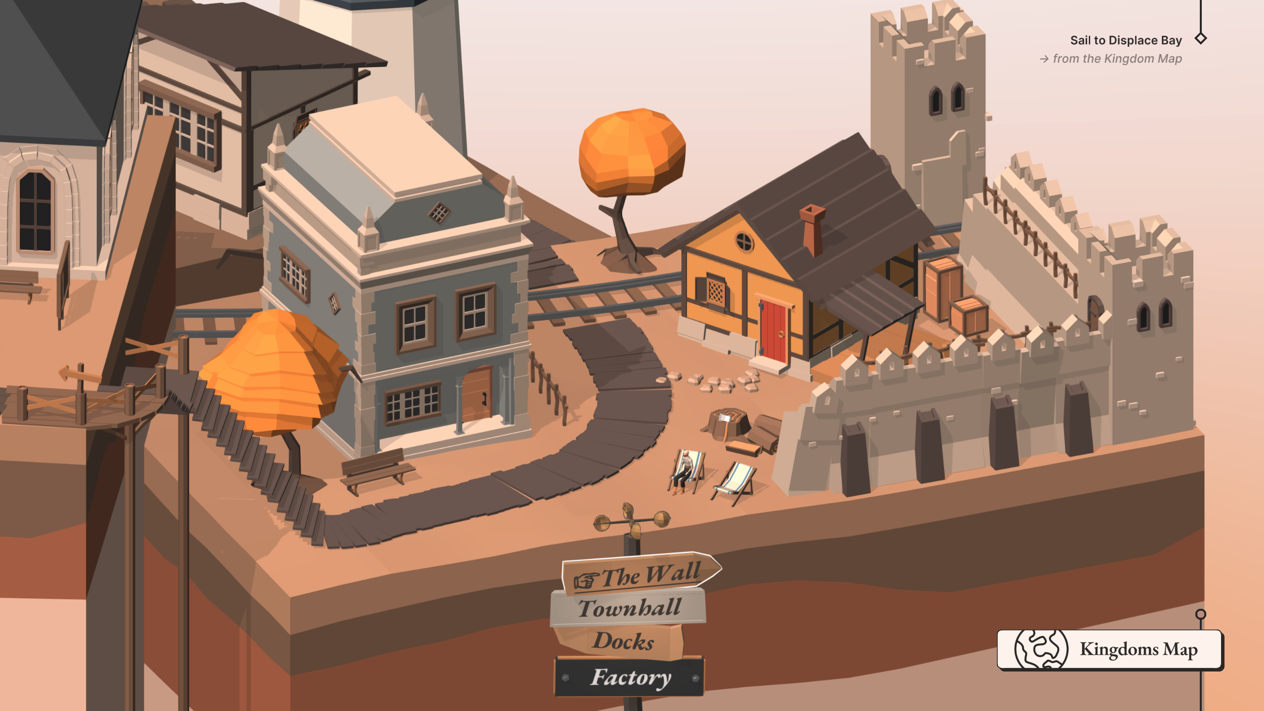 New traversal mechanism for Edge Harbor: you now have to click through gates and stairs to get around town. Or use a new signpost UI for a shortcut!