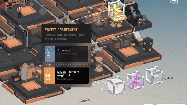 The rectangle boxes in the bottom-left that used to show damage (for example, "6 shock") are now replaced by magical orbs, 1 for each point of damage. This is mostly a visual change, but it feels better to see just how much damage you managed to get from that Wires Department in one turn. They also appear above the department that produced them.