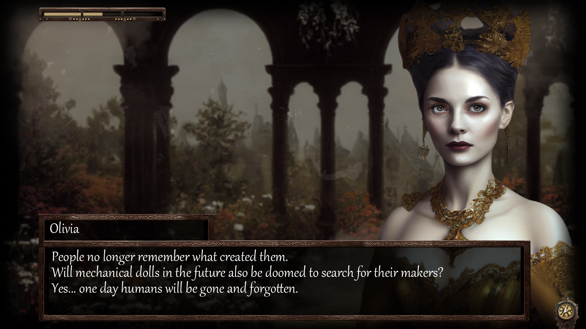 Immerse yourself in a world drawn by neural network and invented by a person. Make decisions to change the course of a complex story. Find an answer to the question: what is "humanity" in a world where a mechanical heart can also break?
